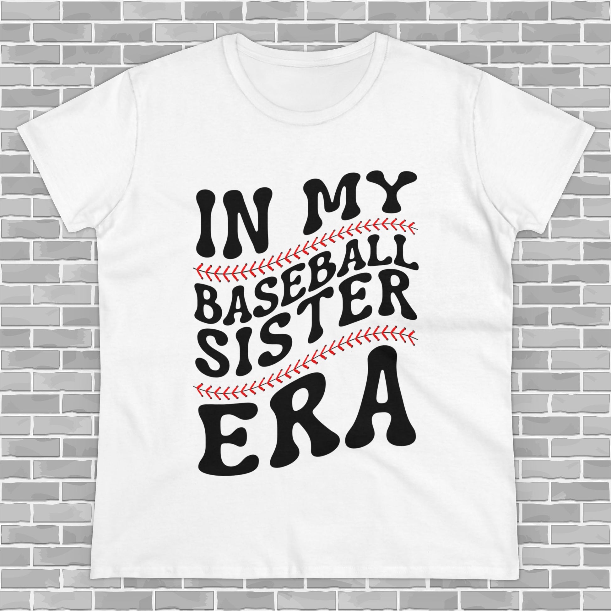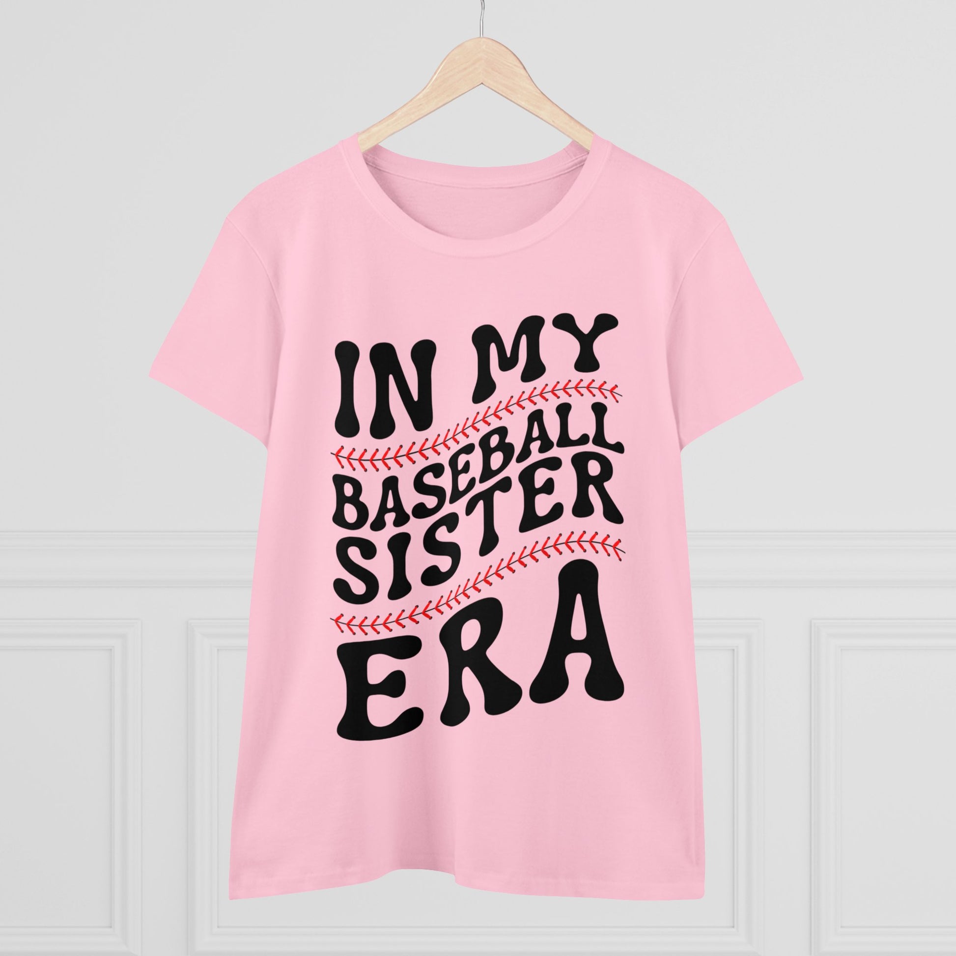 This Women's Midweight Cotton Tee features a design that celebrates being in the baseball sister era. It gives off a sporty and supportive vibe, perfect for baseball fans and sisters supporting their sibling's love for the sport. Ideal for casual wear or attending baseball games.