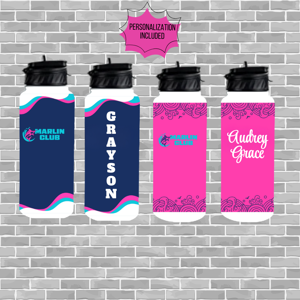 Built to keep up with the most active Marlins, this high-capacity bottle features permanent, full-color sublimation that integrates the club’s identity directly into the finish. The double-wall insulation ensures water stays crisp and cold through the longest practices, while the leak-proof lid and easy-carry loop make it the perfect "grab-and-go" gear . Two designs with two color options each, personalizable with name (4 font choices and colors)